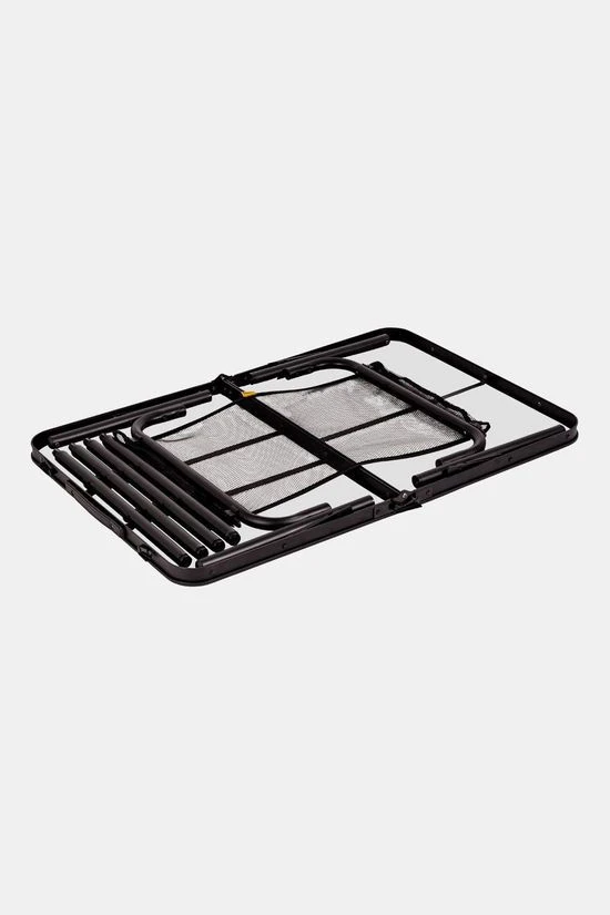 - Daarnaast is de tafel zeer compact als koffermodel op te bergen door de afneembare poten en een deelbaar blad.