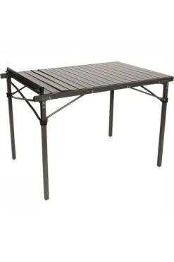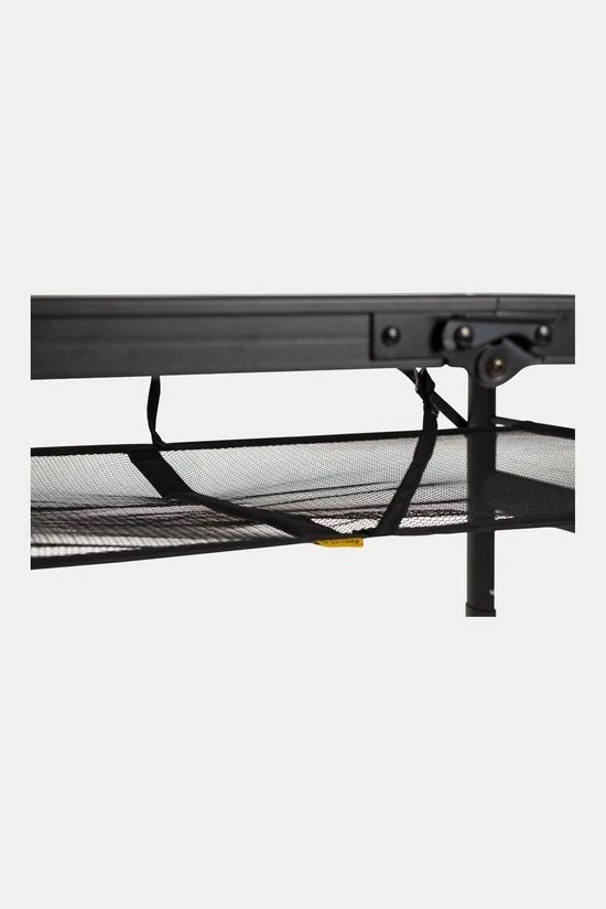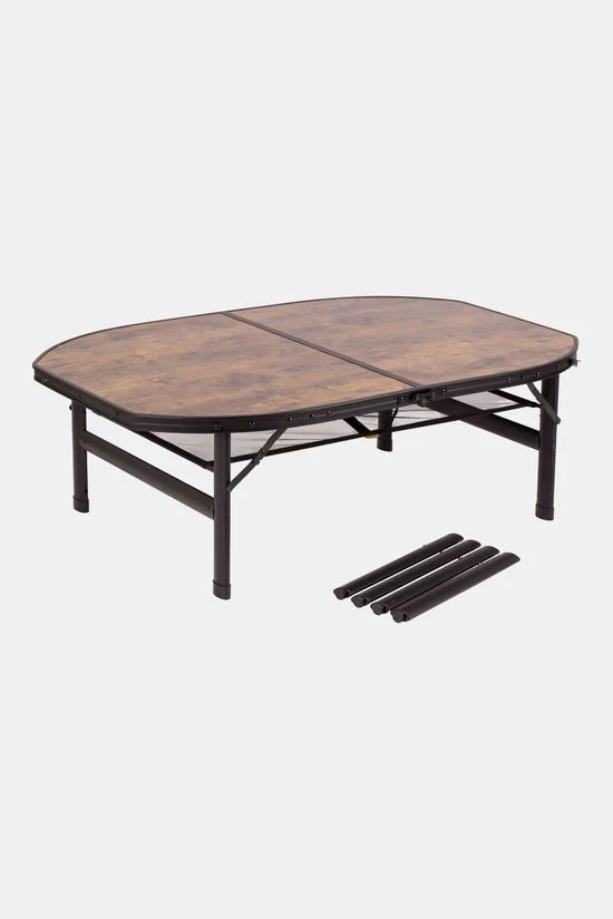 - Daarnaast is de tafel zeer compact als koffermodel op te bergen door de afneembare poten en een deelbaar blad.