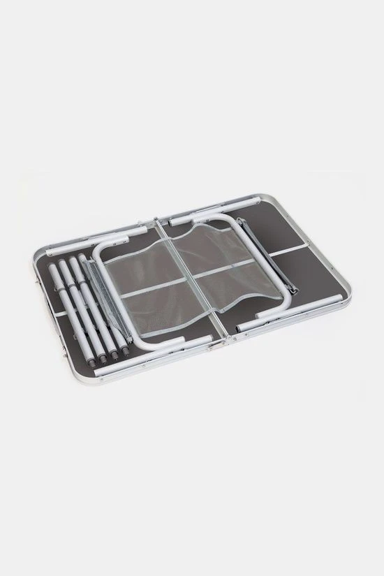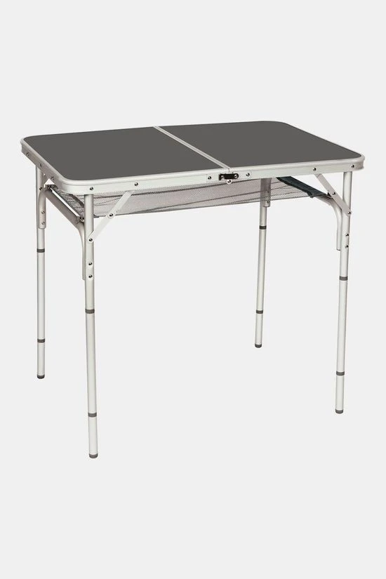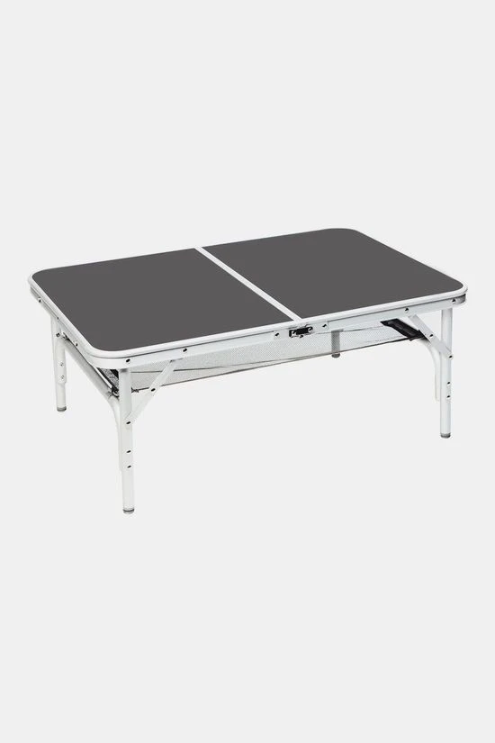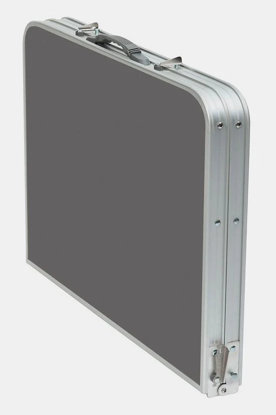 De Bo-Camp Tafel Koffermodel 90×60 cm is een in vier standen verstelbare campingtafel. Deze zeer stabiele heeft afneembare poten, stelschroeven voor extra fijnstelling en een deelbaar tafelblad. Hierdoor is de tafel eenvoudig op te vouwen tot koffermodel (61 x 47 x 7 cm). De tafel is gemaakt van lichtgewicht aluminium. De poten zijn in vier verschillende hoogtes verstelbaar (36, 50, 67, 81 cm). Onder het tafelblad is een net bevestigd om spullen op te bergen.