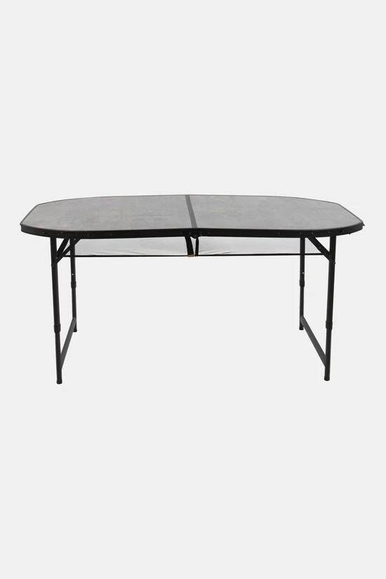 • Stijlvolle aluminium tafel met een industriële uitstraling en betonlook tafelblad.• Extra fijnstelling door middel van de stelschroeven.• Compact als koffermodel op te bergen door de afneembare poten en een deelbaar blad.• Voorzien van een handgreep.• Met een net onder het MDF tafelblad.