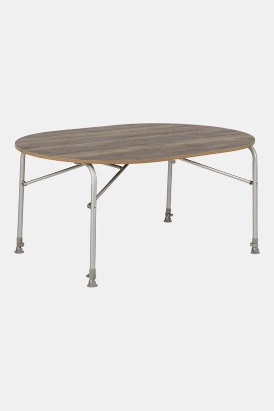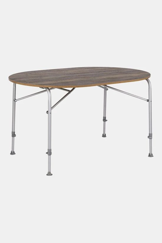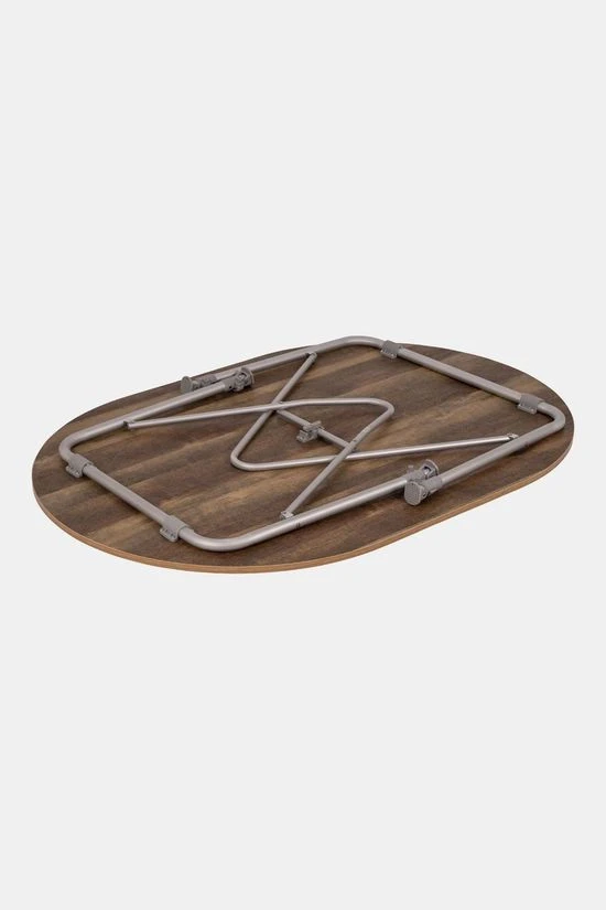 - De Bo-Camp Tafel Feather Oval 90×130 cm is een extreem lichtgewicht maar zeer stabiele campingtafel met houtlook blad.