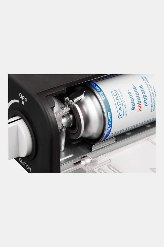 - Werkt rechtstreeks op een 227gr gascartridge.