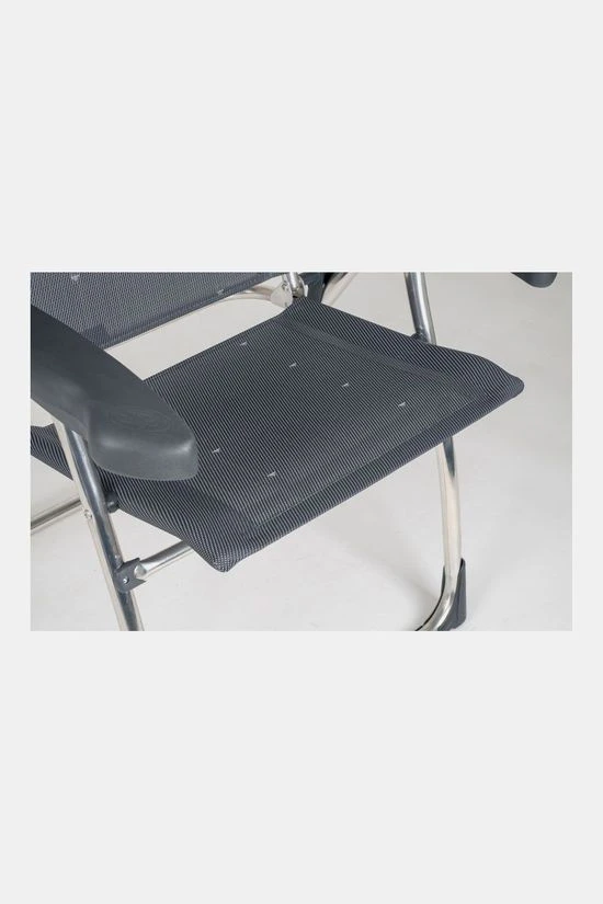 Deze Crespo stoel heeft een kortere rug en is daardoor extra compact op te bergen (93 x 62 x 10 centimeter). De maximale belasting is: 110 kilogram.