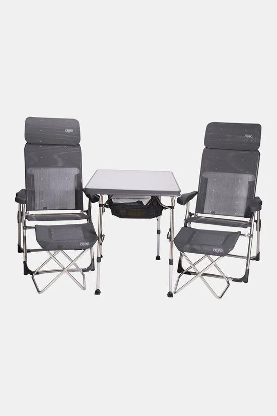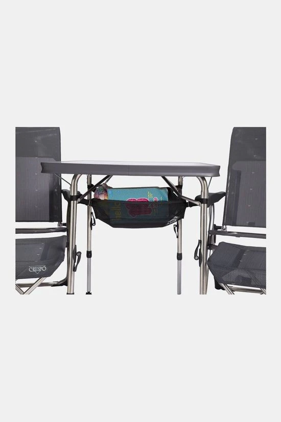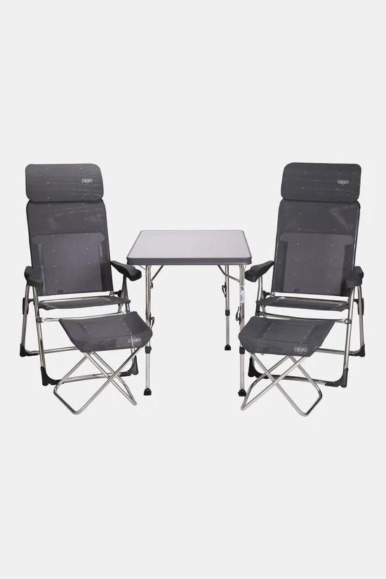 - De Crespo Set AA-213 Stoel/Tafel/Voetbed bestaat uit: twee AA-213 Air-Elite Compact stoelen met bijbehorende voetenbanken, een tafel AL-246 met opbergnet en opberghoes.