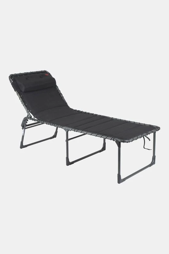 Zonnebril op, boekje erbij en ga heerlijk ontspannen liggen op het Vouwbed Air-Deluxe van Crespo. Wees niet verbaasd als je er het liefst de hele dag op wilt liggen, want het ligt heerlijk. Het ligbed is inclusief hoofdkussen en de hoofdsteun heeft vijf standen voor de gewenste hoogte. Het doek veert met je mee dankzij de elastiek bevestiging aan het frame. Door de open structuur van het gepolsterde doek houdt het materiaal geen vocht vast en droogt het snel. Als je er nog vanaf kunt komen, kun je het ligbed zeer plat opvouwen en makkelijk dragen aan de handgrepen.