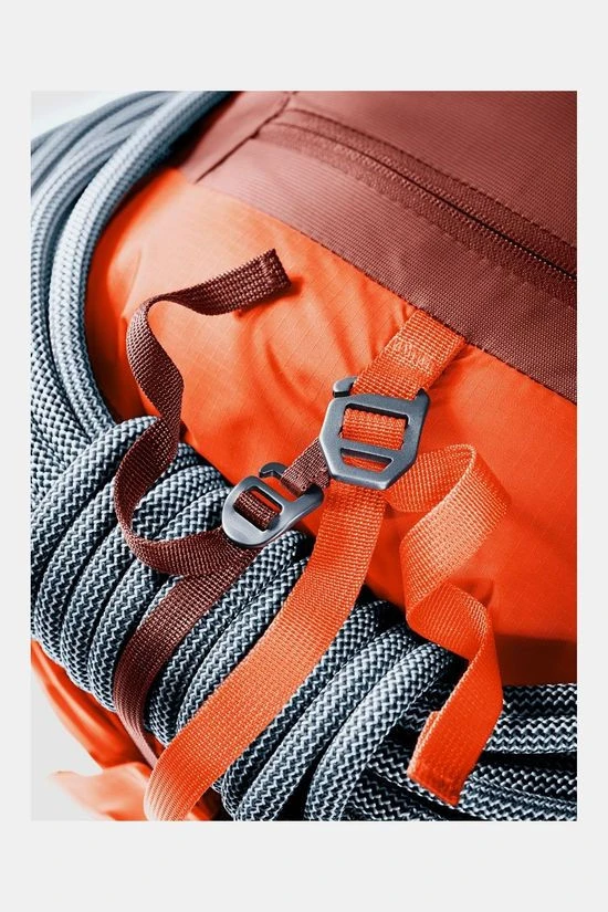 een opbergbare strap voor een touw en heupvinnen maken van de Guide 30 een veelzijdige rugzak voor uitdagende tochten. - Deze rugzak kan ook met een klimharnas gebruikt worden.