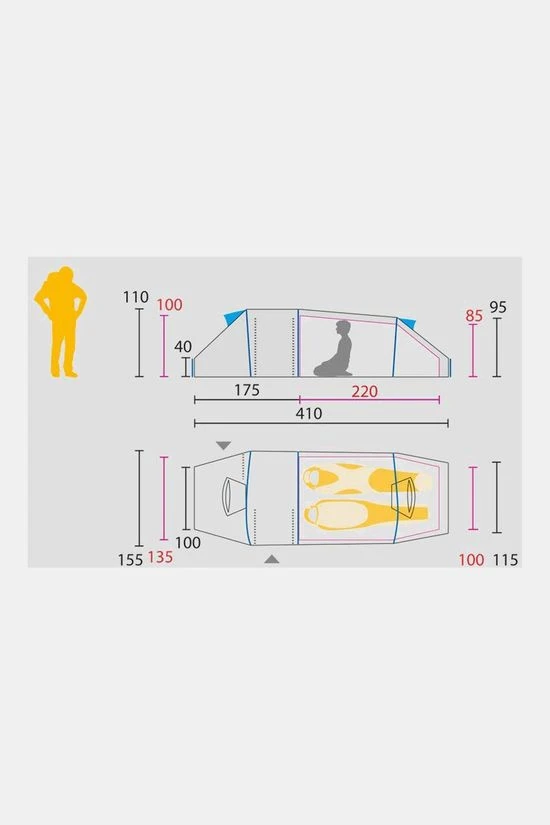 | Binnentent afmetingen (l x h x b) | 220 – 100 – 135 |
