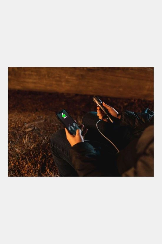 - De meegeleverde oplaadbare batterij zorgt voor maximaal 20 uur gebruik en dient tevens als powerbank.