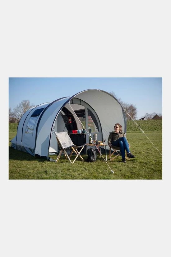 - De Karsten Opera Blueline Tunneltent is voorzien van een ijzersterke bisonyl kuip dat vastzit aan de tent.