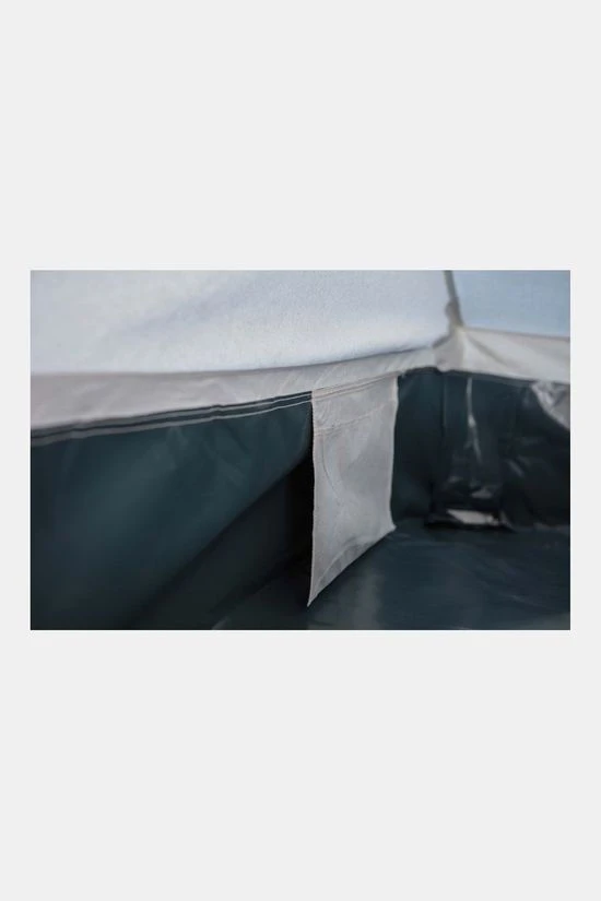 - Het grondzeil heeft een opstaande rand van 25 cm. Zo hou je tocht, vocht en ongedierte mooi buiten de tent.