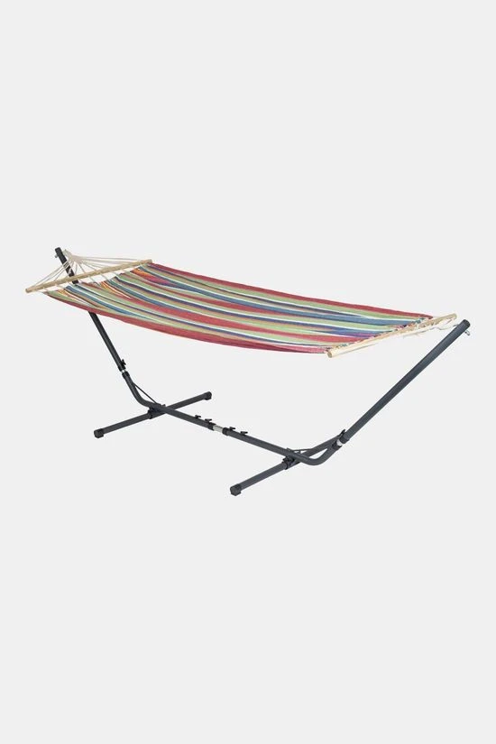 De Bo-Garden Hangmat Samba Met Spreidstok Rainbow is een vrolijke en stevige hangmat. Heerlijk ontspannen op vakantie, in de tuin of op het balkon. Gemaakt van stevig 320gr/m² katoen/polyester. De hangmat beschikt over een spreidstok van 100 cm aan de uiteinden waardoor de stof volledig open blijft. Maximaal draagvermogen: 150 kilogram.