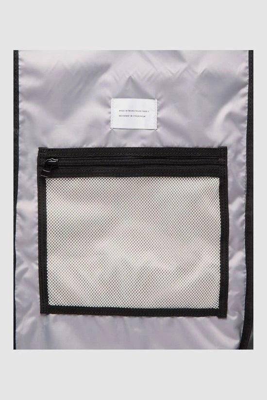 - De tas is gemaakt van gerecycled polyester met een waterdichte TPU-coating. Het weefsel is strak en dicht, oorspronkelijk gemaakt voor kogelvrije vesten.