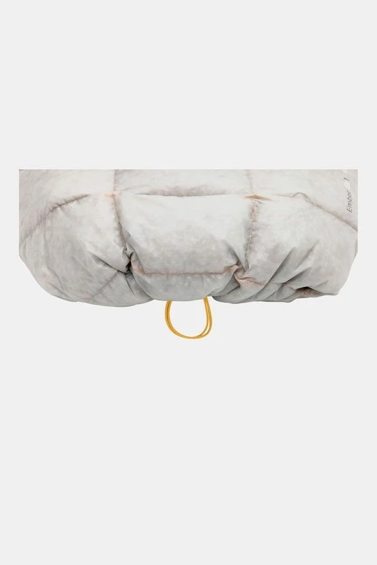 - De Ember-serie brengt de eenvoud van het quiltconcept een stap verder – klikbare bevestigingsriemen houden deze quilt op jouw slaapmat, terwijl de trekkoordbasis van de 50°F en 35°F de Ember een vormveranderende functie geeft : breder aan de basis voor meer bewegingsvrijheid als het warm is, nauwsluitend als het koeler is.
